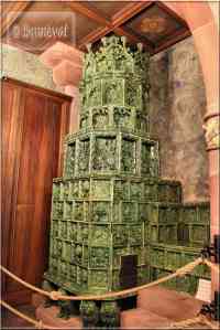 Ook in Keulen is een soortgelijke tegel gevonden. Er zijn een paar kleine verschillen. Op de Keulse tegel komen ook sterretjes voor, en de letters IHS staan in spiegelbeeld. In Keulen zijn ook soortgelijke tegels gevonden met de letters MA. Dit staat voor Maria. Het motief van de distelrank op keramiek en kacheltegels komt in Keulen sinds omstreeks 1500 voor.