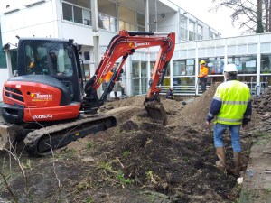Inmiddels vriest het dat het kraakt, maar de afgelopen twee weken was het prima graafweer. Samen met archeologen van archeologisch bureau BAAC werd onder auspiciën van Team Erfgoed van de gemeente Haarlem een archeologische begeleiding in de Haarlemmer Kweektuin uitgevoerd. Aanleiding voor de werkzaamheden was de aanleg van nieuwe nutsvoorzieningen voor de huidige gebruikers van de Haarlemmer Kweektuin.